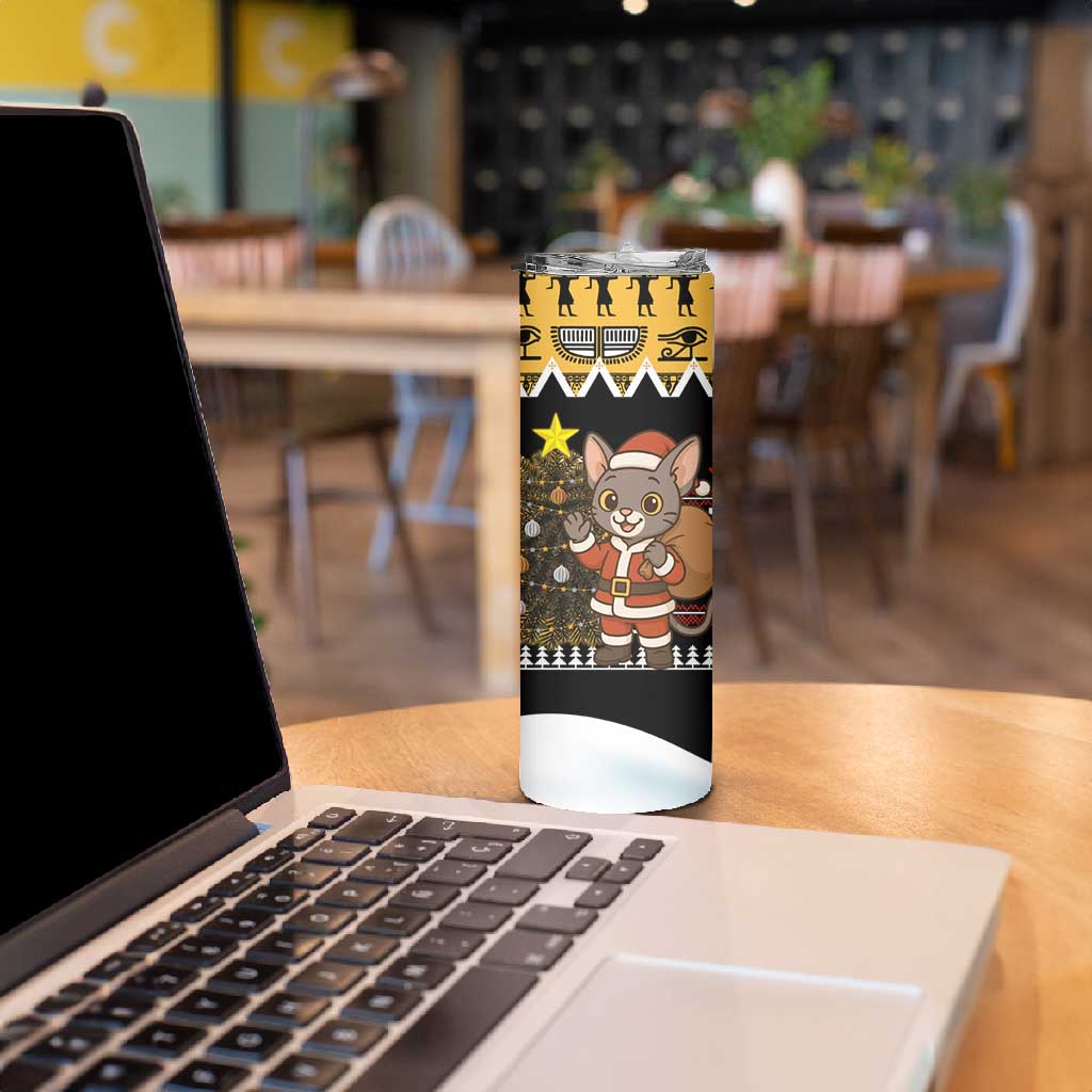 Egypt Christmas Skinny Tumbler Santa Cat Sleigh Reindeer Christmas Tree and Ancient Hieroglyphic