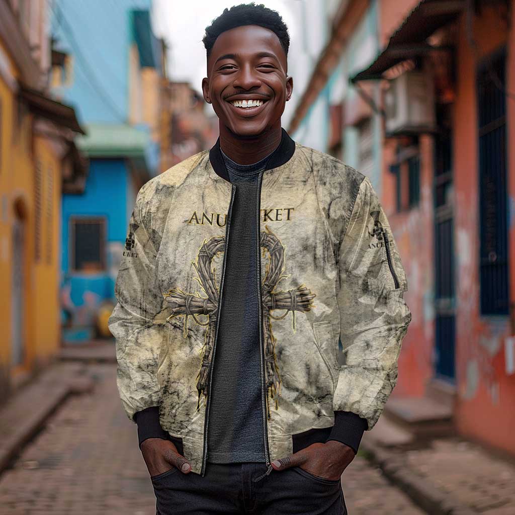 Anuket Sleeve Zip Bomber Jacket Egyptian Queen of the Cataracts Ankh Symbol