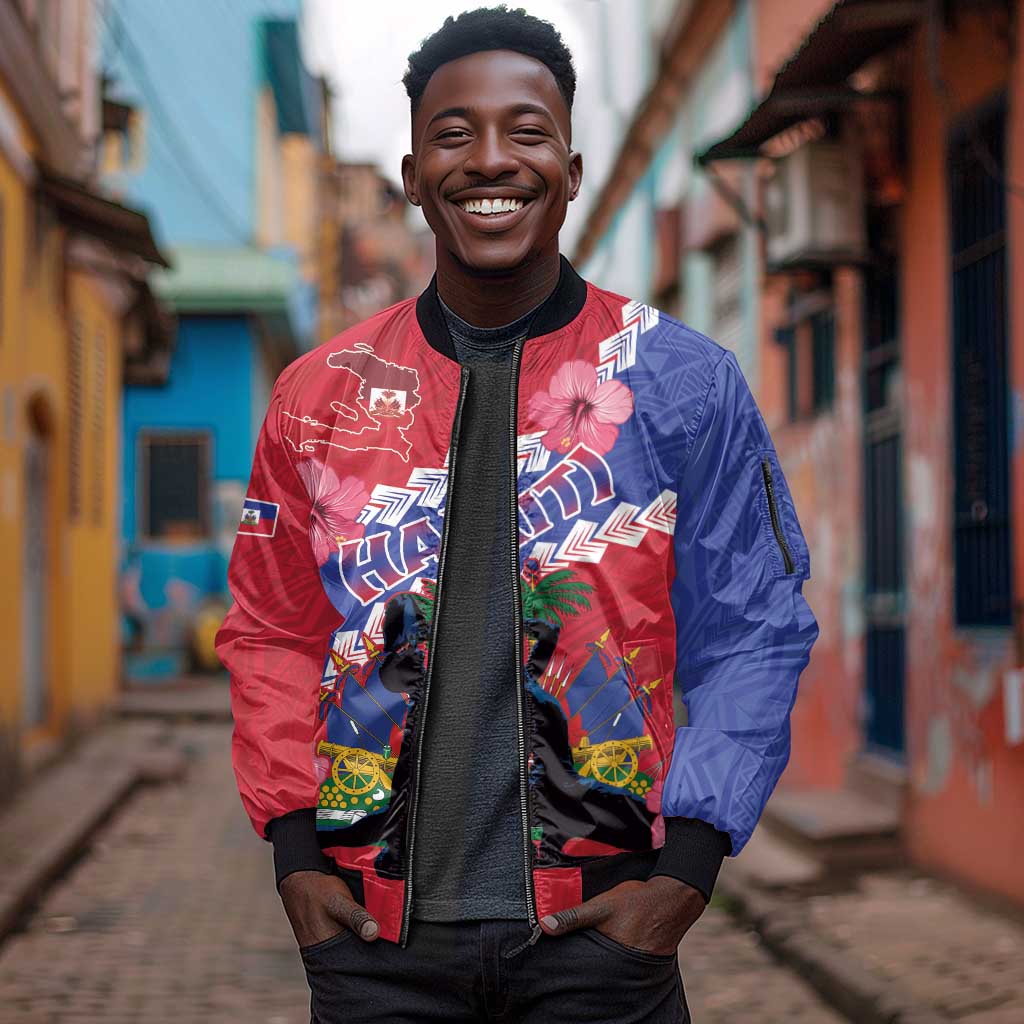 Haiti Neg Maron Sleeve Zip Bomber Jacket Coat Of Arms - Hisbicus Polynesian