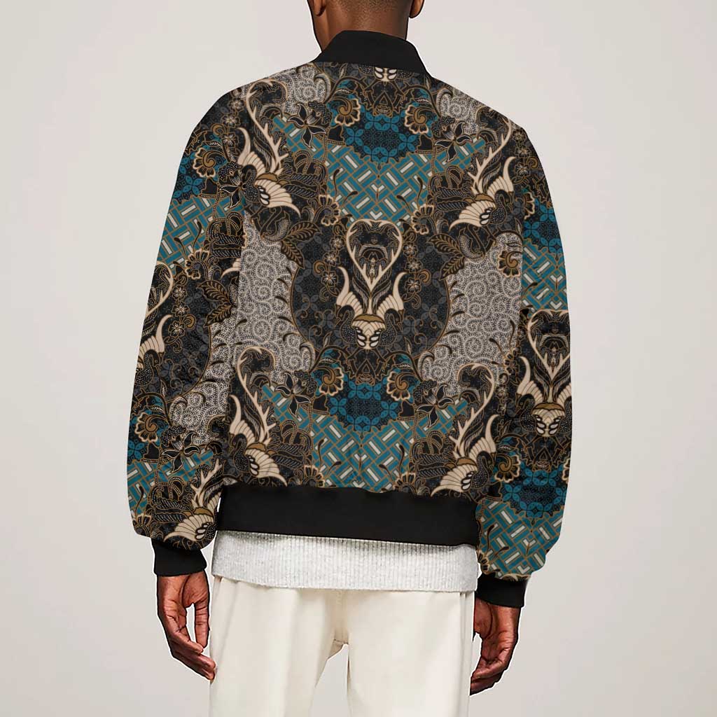 Madiba Nelson Mandela Batik Sleeve Zip Bomber Jacket Black Indonesia Heritage