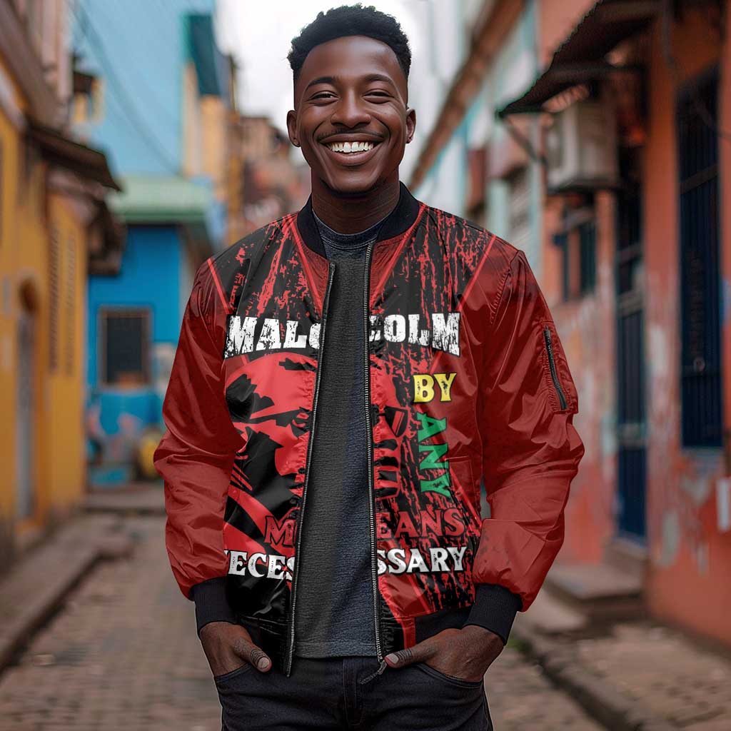 Malcolm X By Any Means Necessary Sleeve Zip Bomber Jacket Retro Style