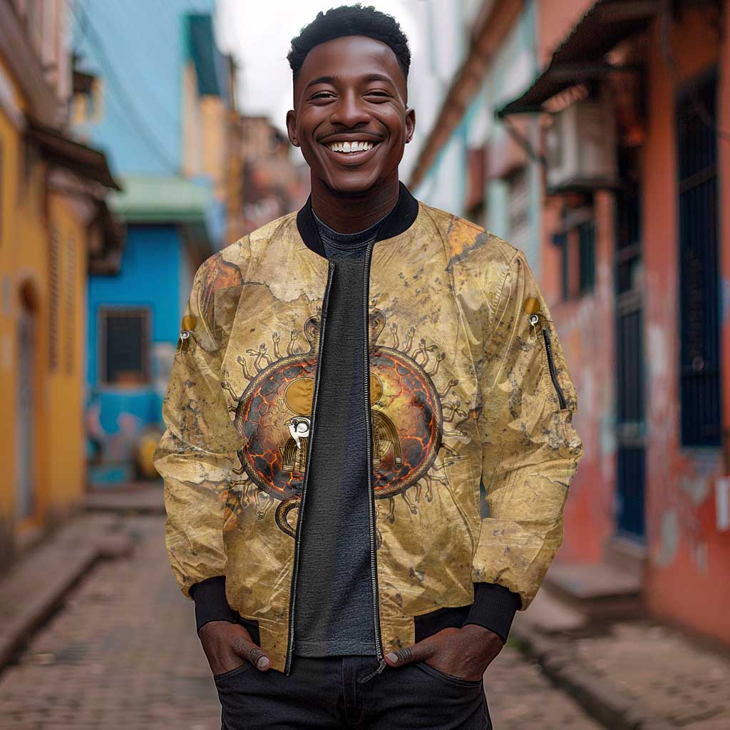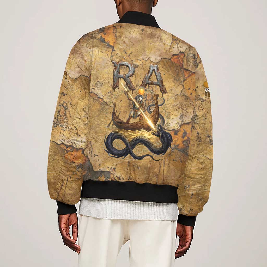 Ra Egyptian Sleeve Zip Bomber Jacket Sun God Solar Disk Serpent Slayer Ancient Egyptian Boat of the Underworld