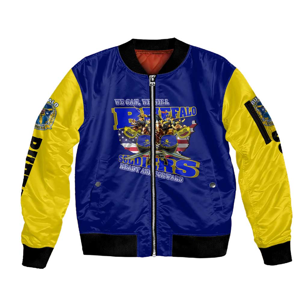 We Can We Will Buffalo Soldiers Sleeve Zip Bomber Jacket Us Army Ready and Forward