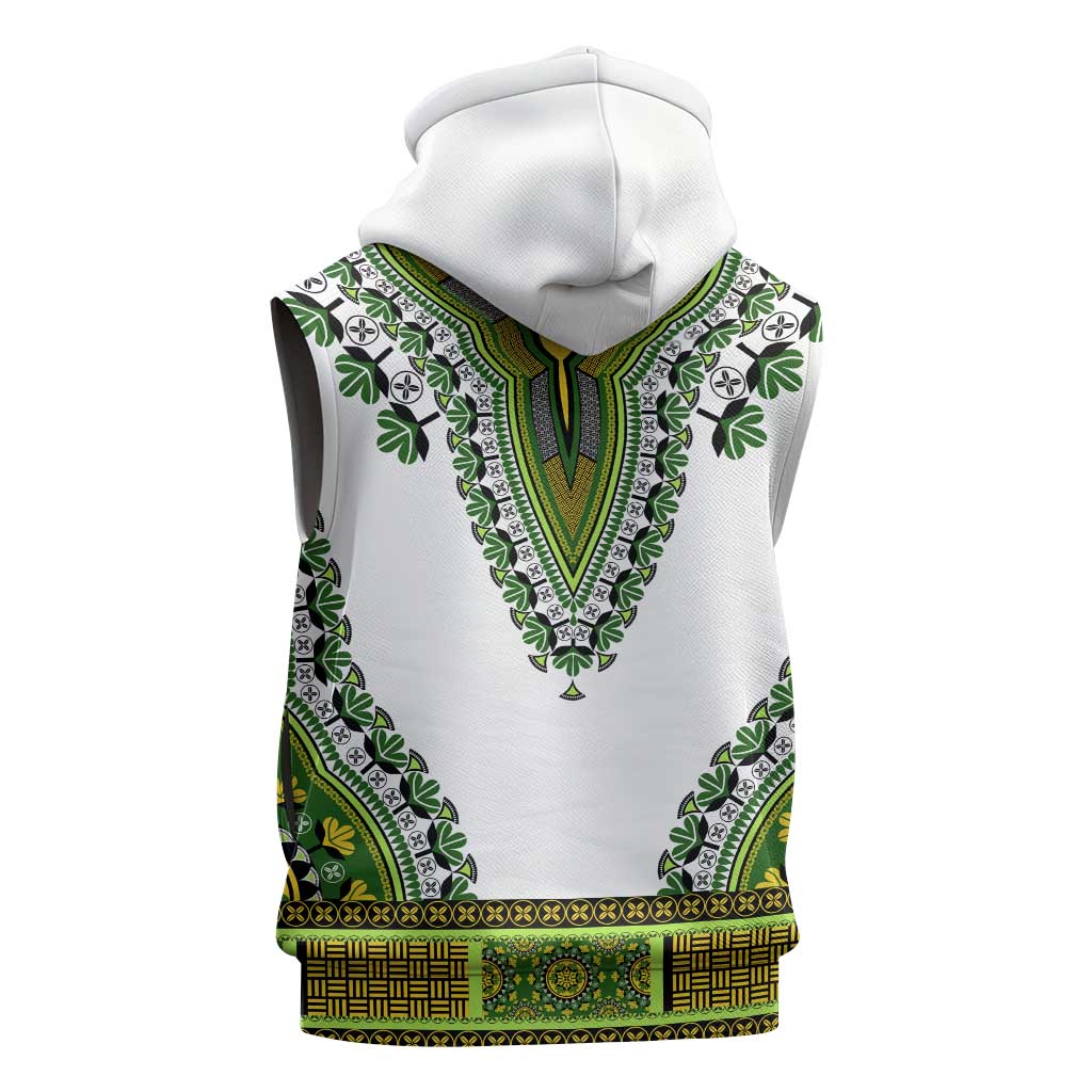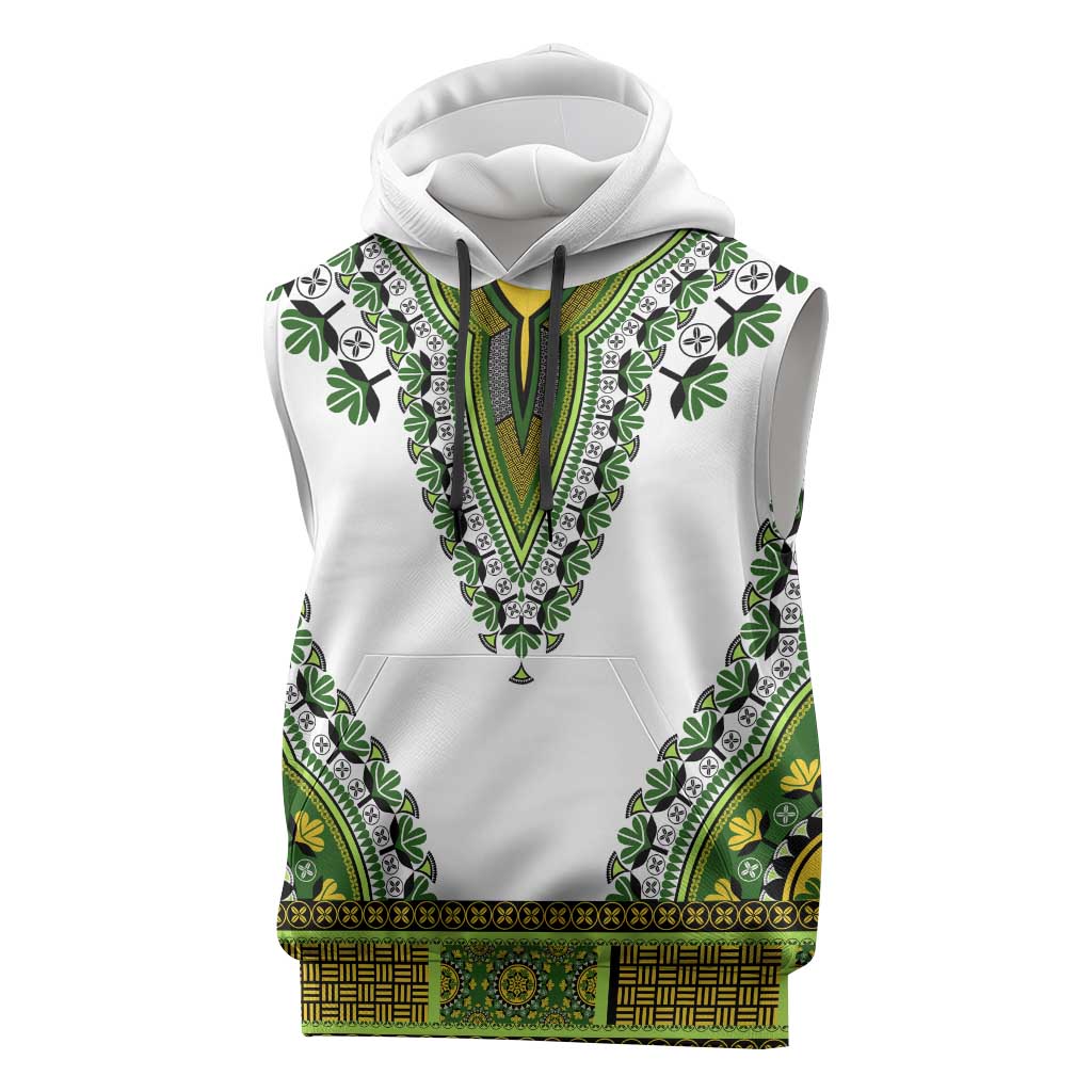 Africa Sleeveless Hoodie African Dashiki Royal Green Version