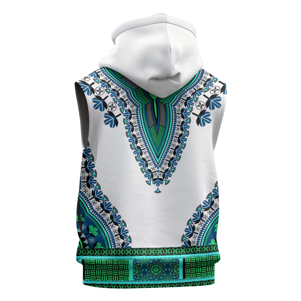 Africa Sleeveless Hoodie African Dashiki Royal Turquoise Version