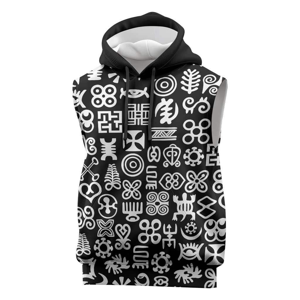 African Adinkra Sleeveless Hoodie - Mixed Pattern Symbols