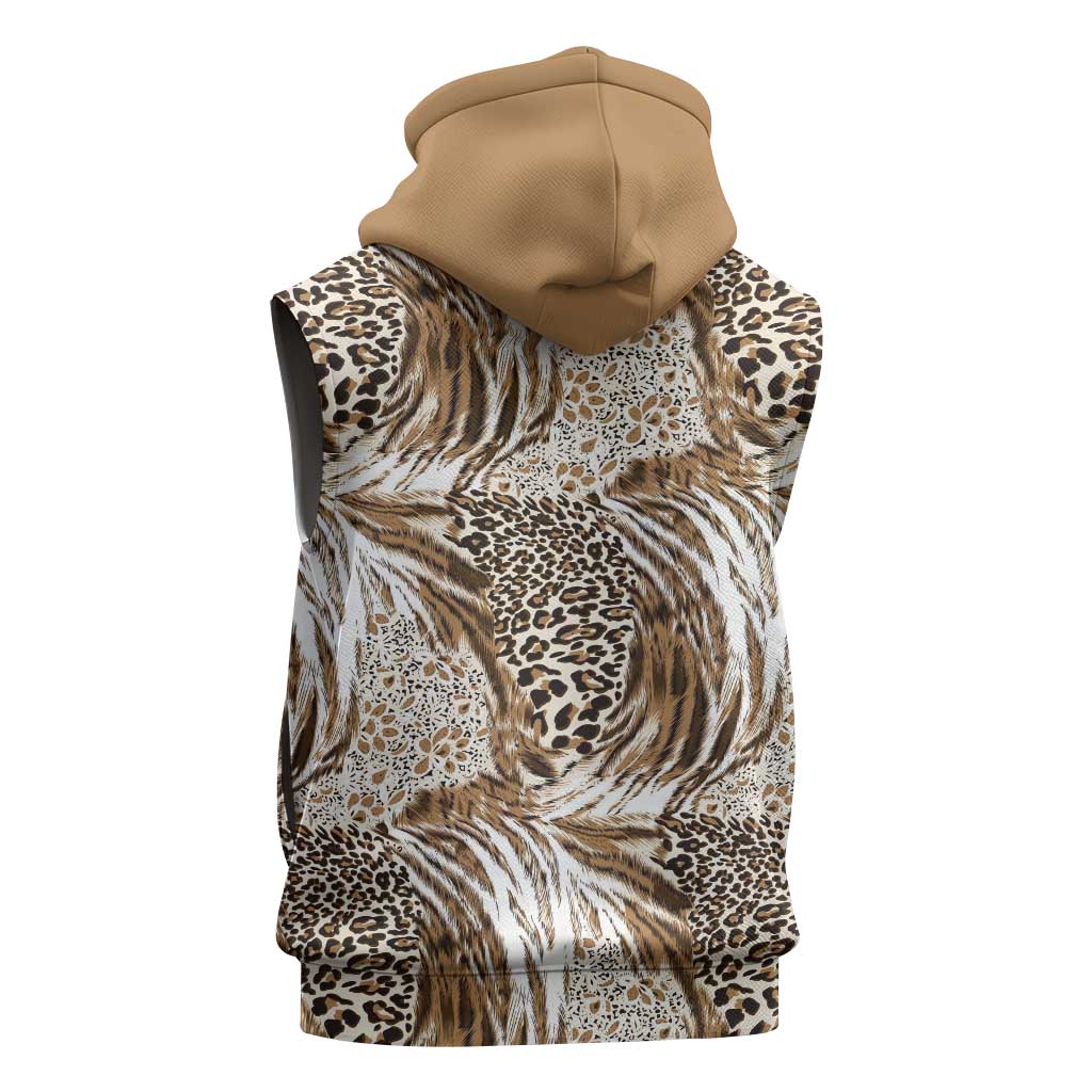 African Wild Animal Skins Sleeveless Hoodie Leopard Pattern
