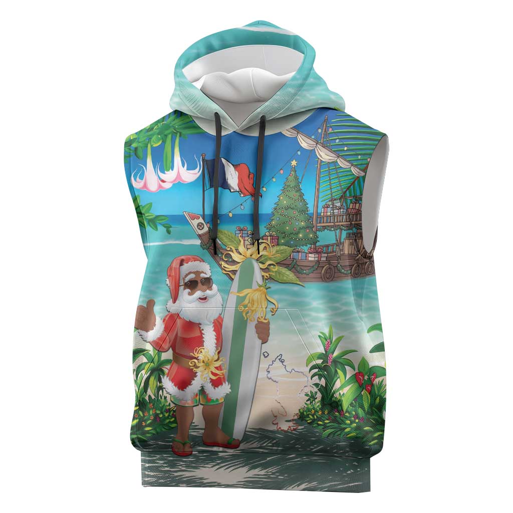 Afro Christmas in Mayotte Sleeveless Hoodie Santa Chill on Tropical Beach