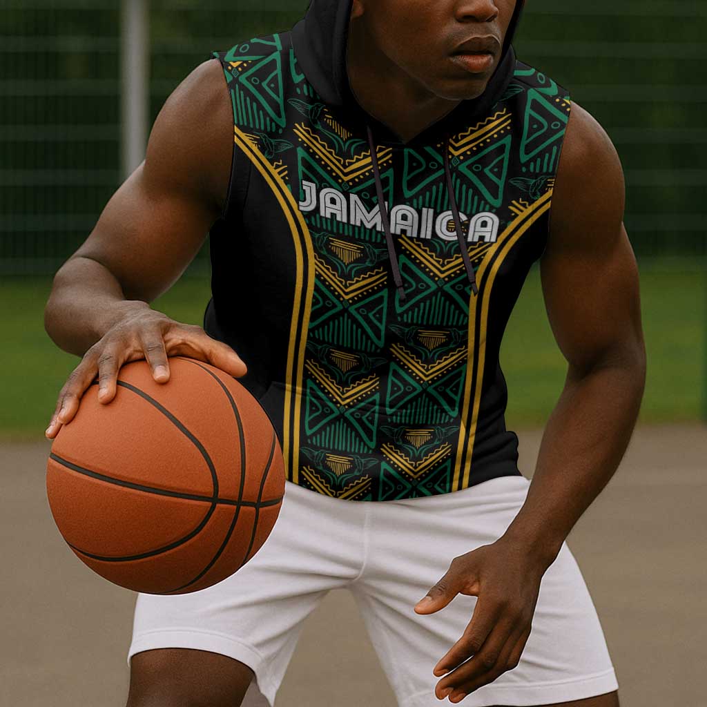 Afro-Jamaica Custom Sleeveless Hoodie Reggae Boyz Ethnic Motifs