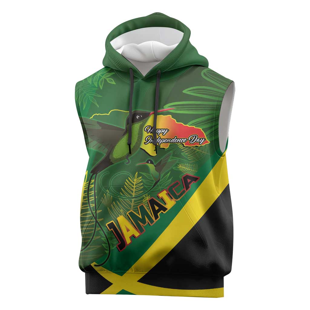 Afro Jamaica Independence Day Sleeveless Hoodie Swallow-tail Hummingbird with Tropical Plants