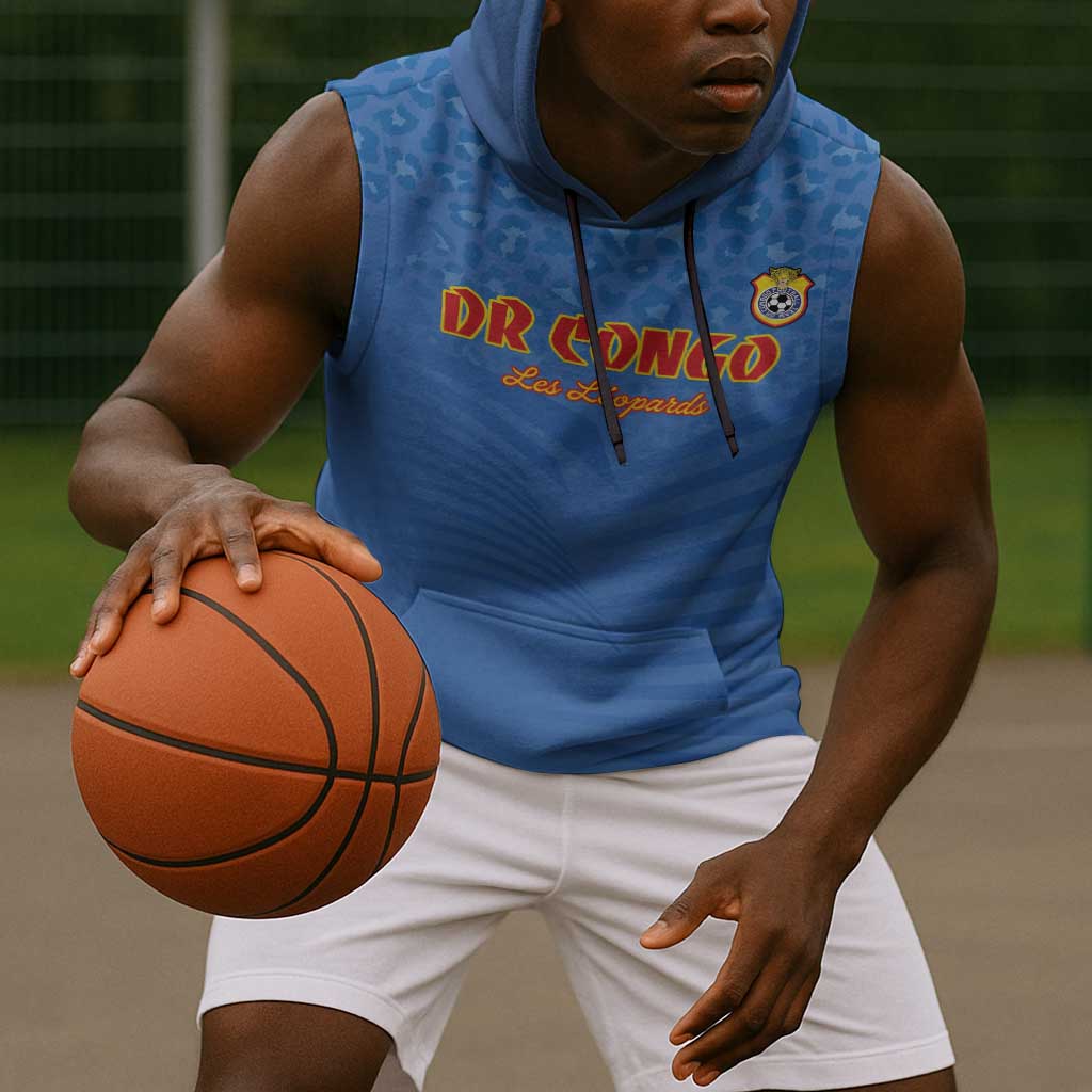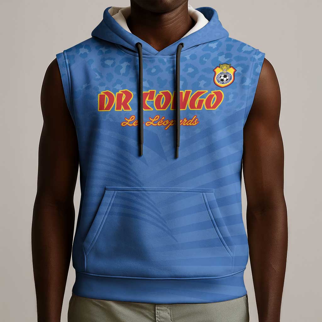 Custom DR Congo Football Sleeveless Hoodie Allez Les Léopards