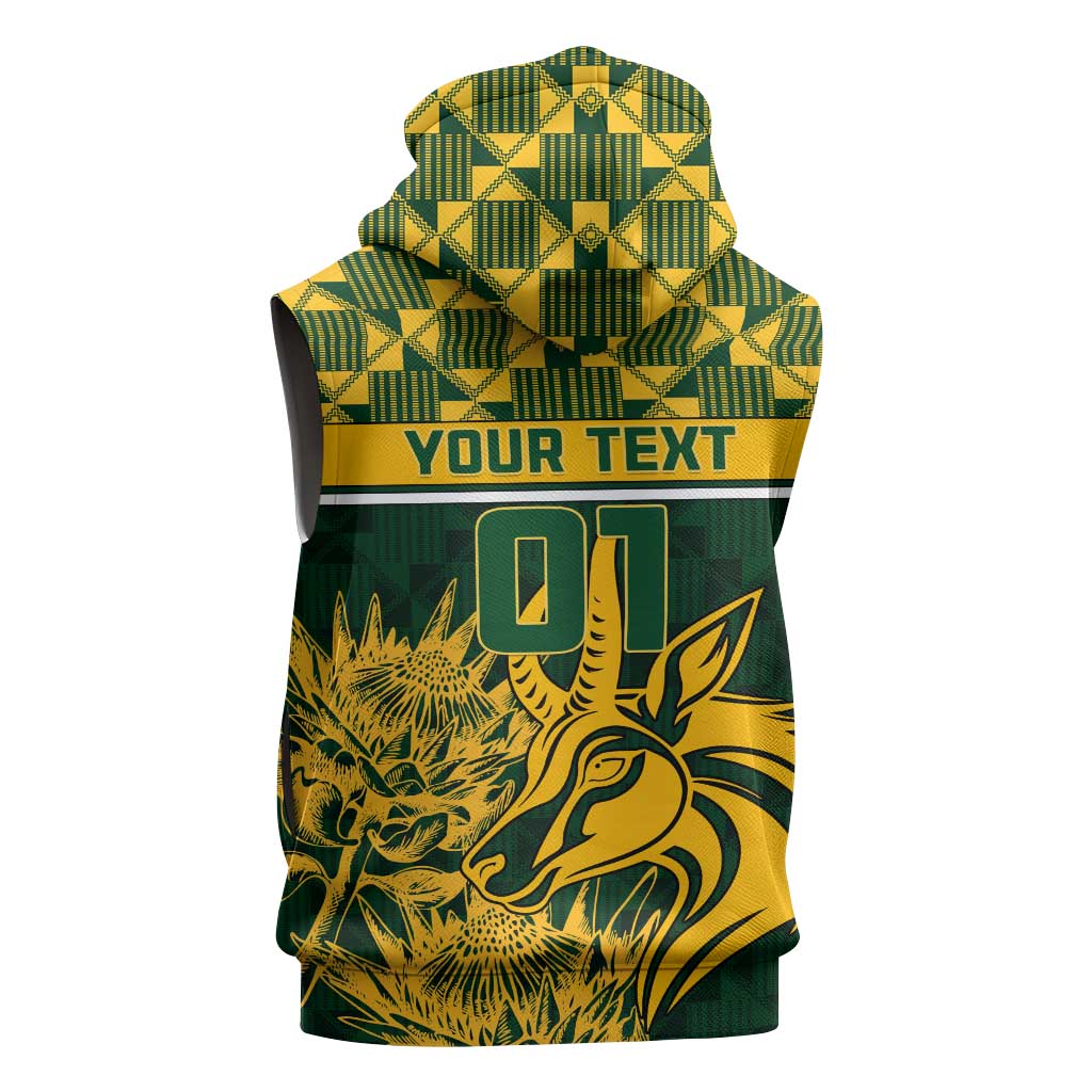 Custom South Africa Rugby Sleeveless Hoodie - Go Springboks with African Pattern