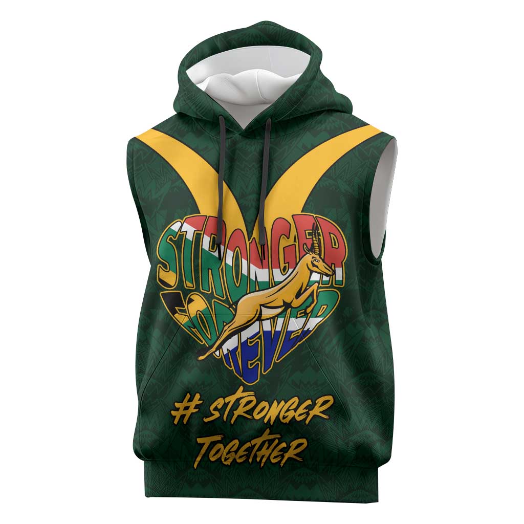 Custom South Africa Rugby Sleeveless Hoodie - Stronger Together, Stronger Forever, Bokke World Cup