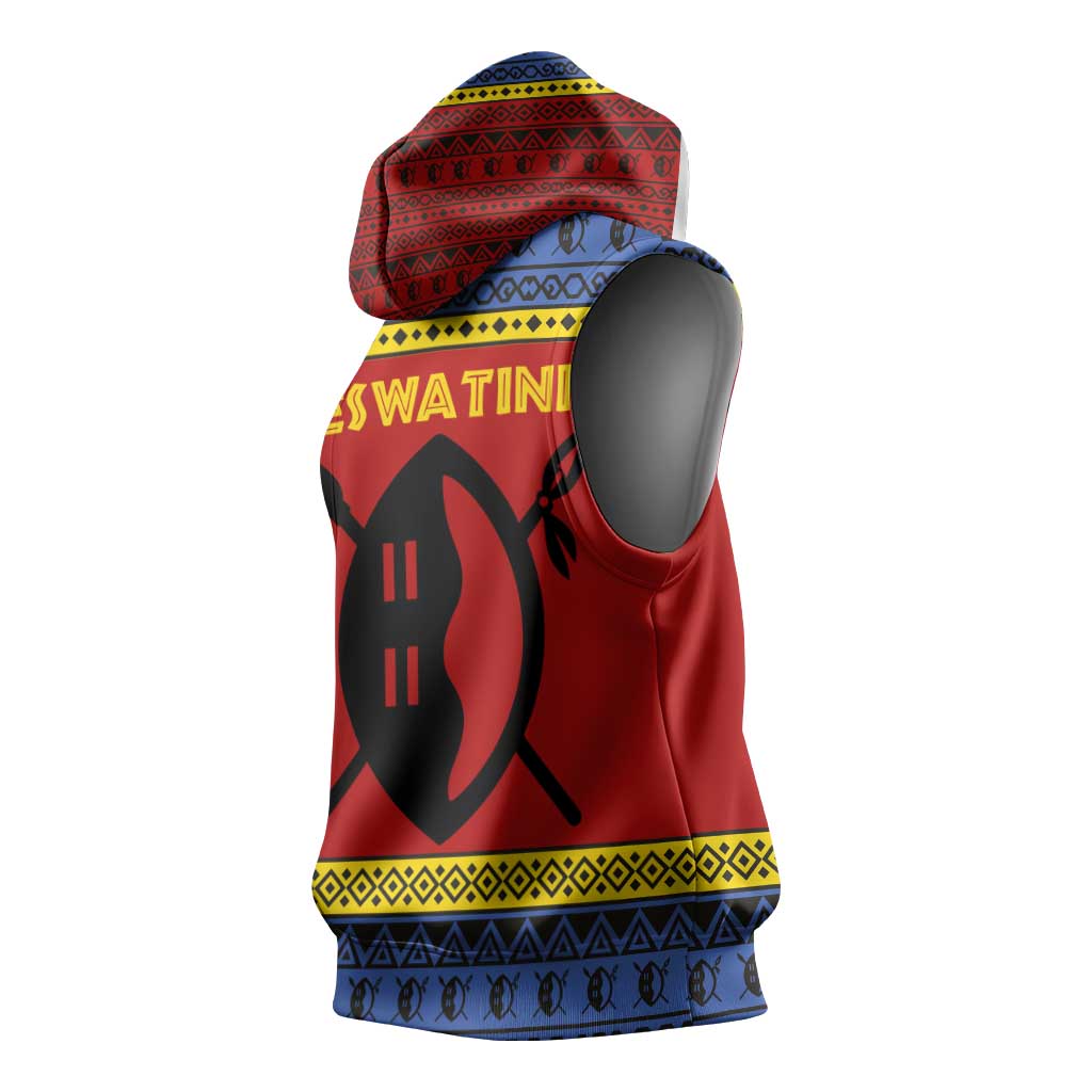 Eswatini Flag Sleeveless Hoodie Nguni Shield Spear Pattern