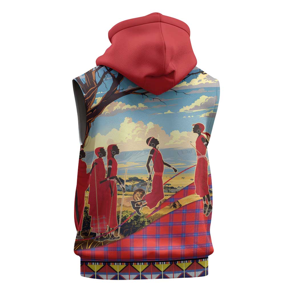 Maasai Adumu Dance Sleeveless Hoodie Shuka Pattern - Kenya Safari
