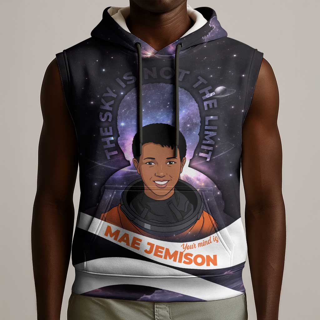 Mae Jemison Sleeveless Hoodie Cartoon Astronaut Portrait, The Sky Is Not the Limit Quote and Galaxy Dreamer