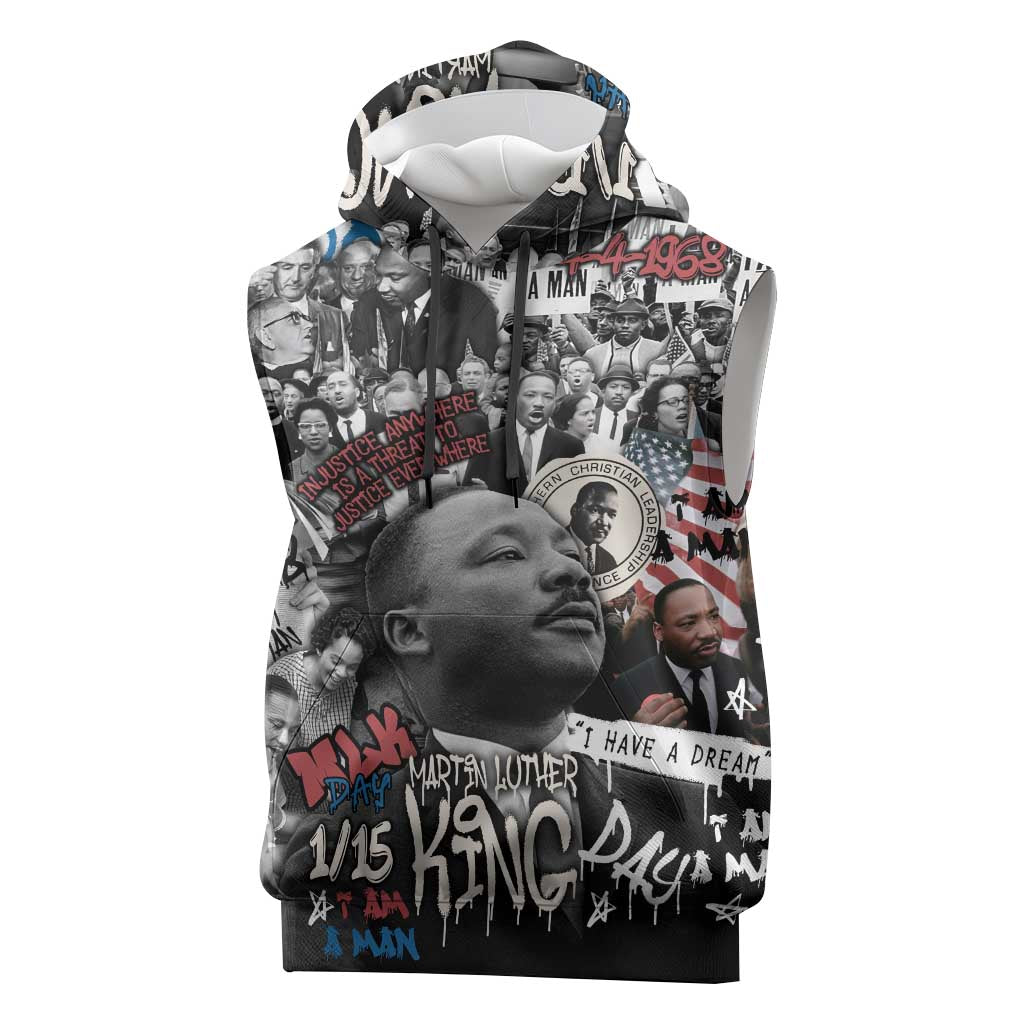 Martin Luther King Day Afro Sleeveless Hoodie Civil Rights Leader - Classic American Street Graffiti