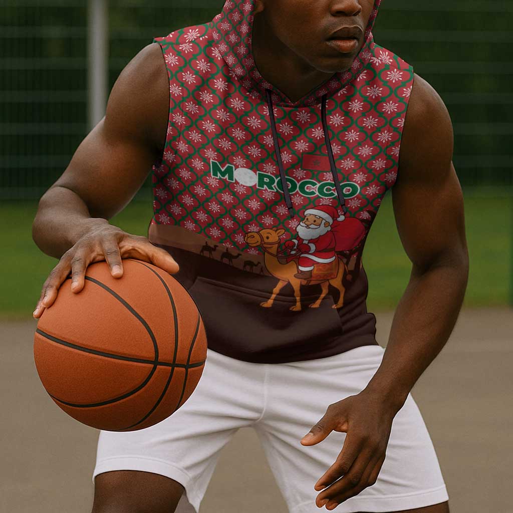 Morocco Christmas Sleeveless Hoodie Santa Claus Camel Caravan Desert Scene