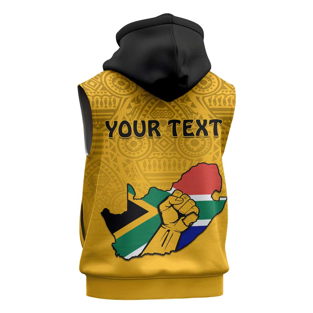 Personalised South Africa Sleeveless Hoodie African Pattern Happy Freedom Day Yellow Version