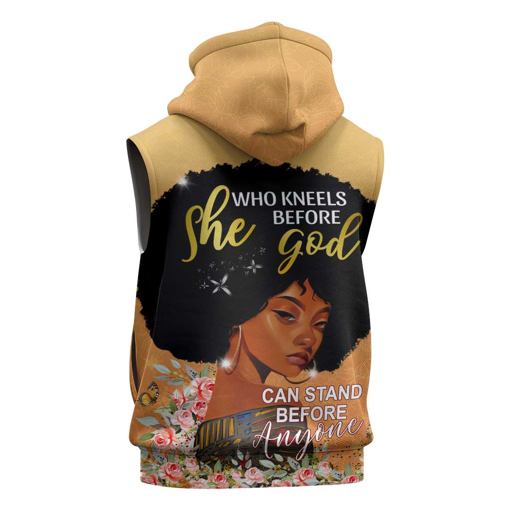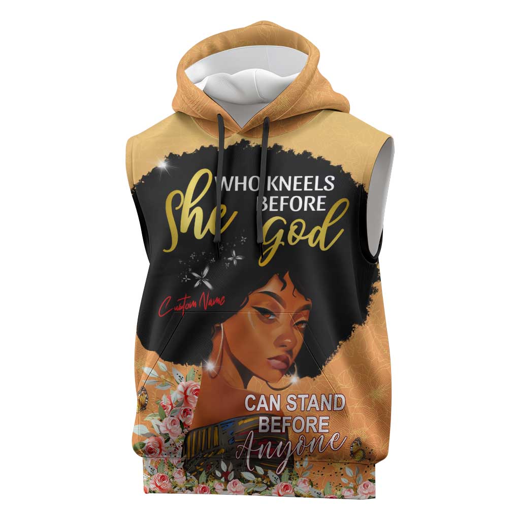 Personalized African Black Women Sleeveless Hoodie She Who Kneels Before God