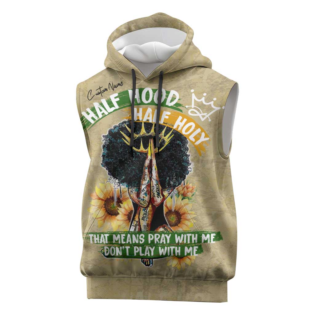 Personalized African Women Sleeveless Hoodie Half Hood Half Holy