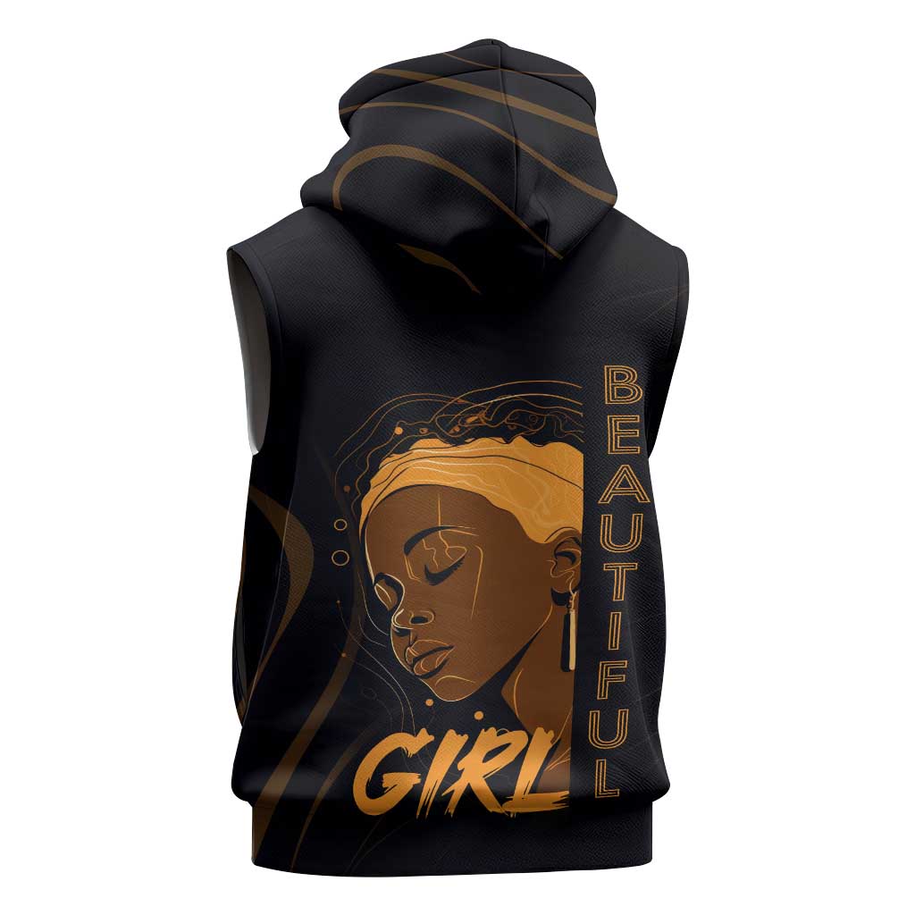 Personalized Beautiful Black Girl Sleeveless Hoodie - Women of Africa Design