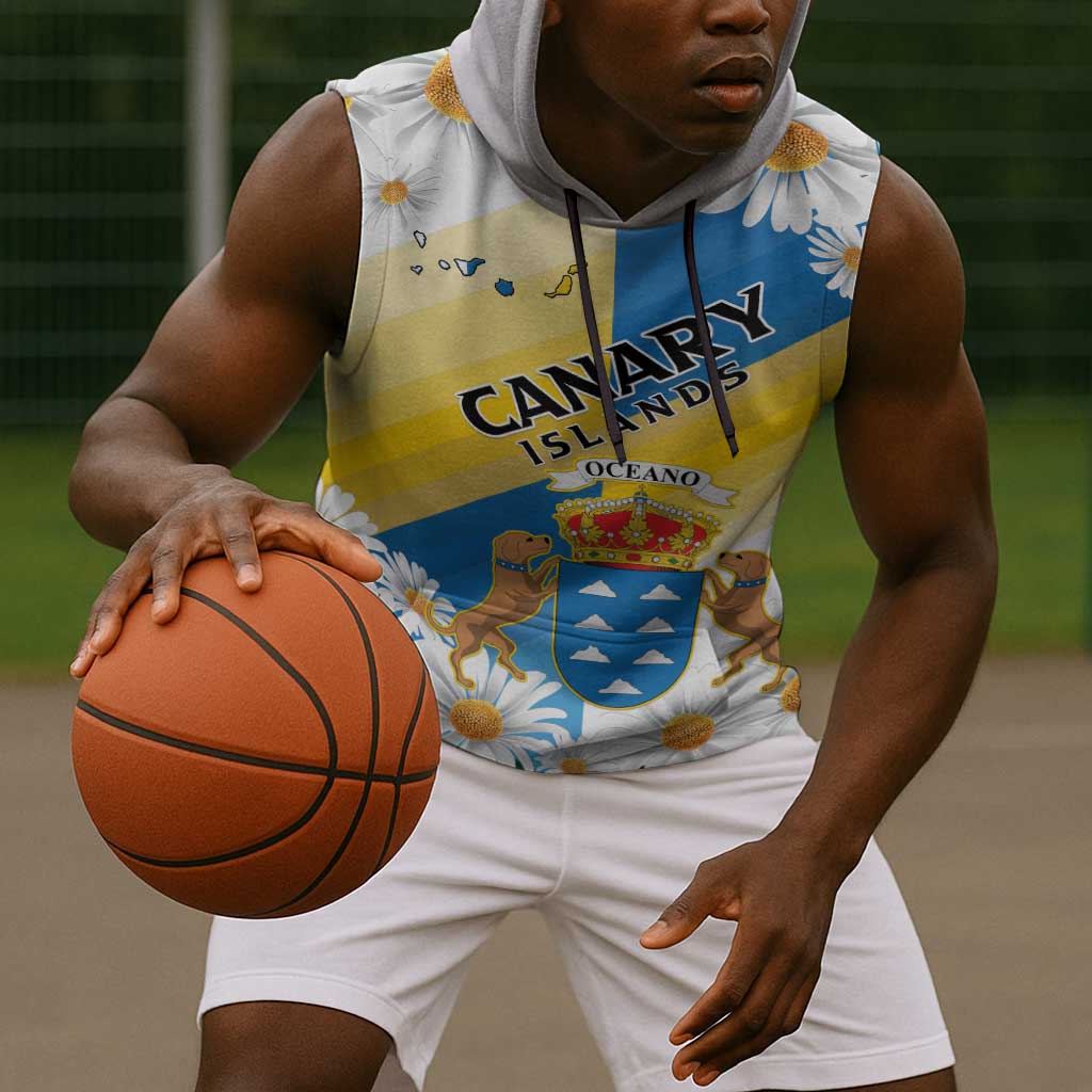 Personalized Canary Islands Sleeveless Hoodie Coat Of Arms Argyranthemum Frutescens