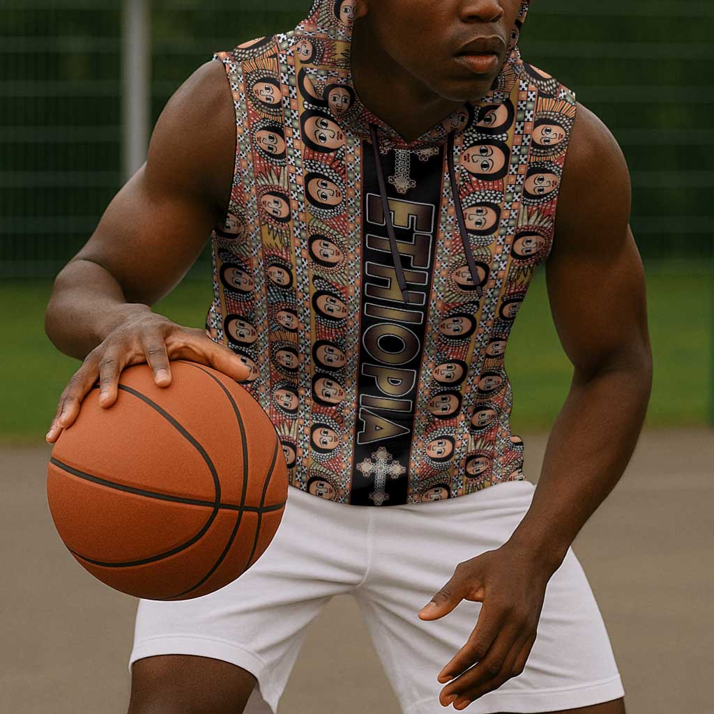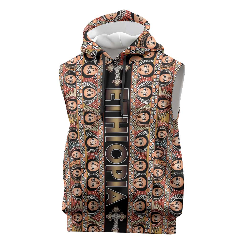 Personalized Ethiopia Sleeveless Hoodie Ethiopian Tewahedo Angel Orthodox Black Color