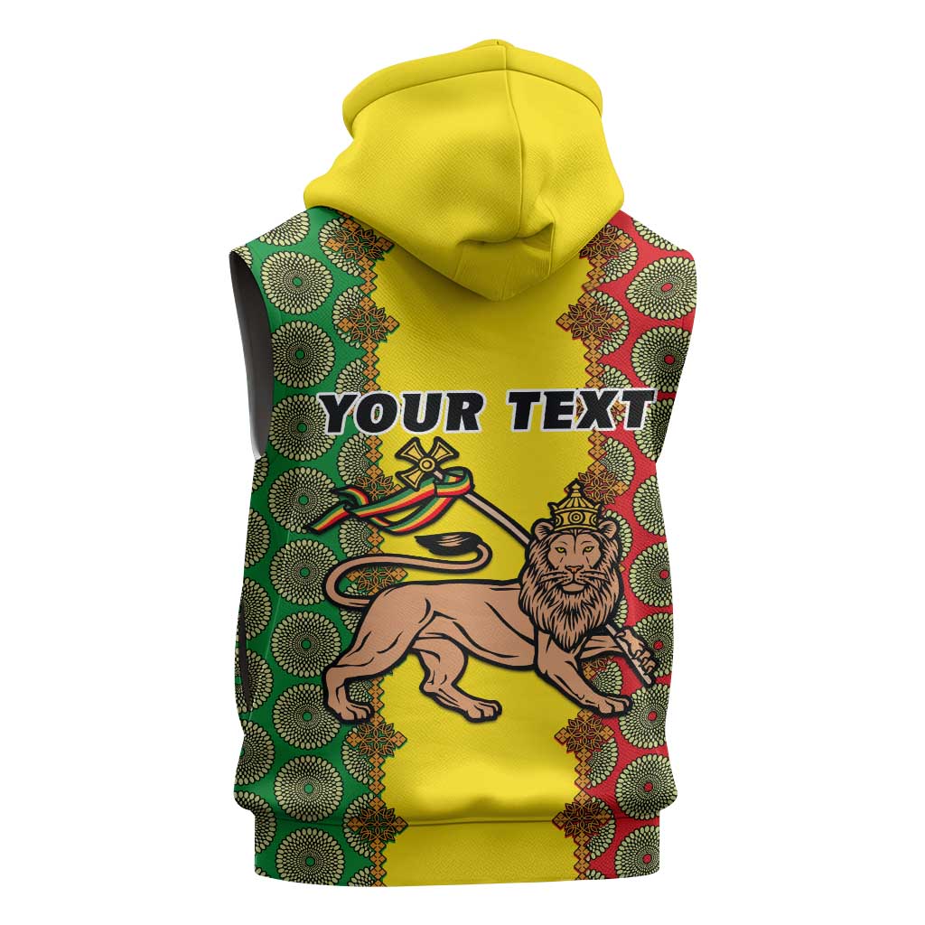 Personalized Ethiopia Sleeveless Hoodie with Lion of Judah and African Pattern Design