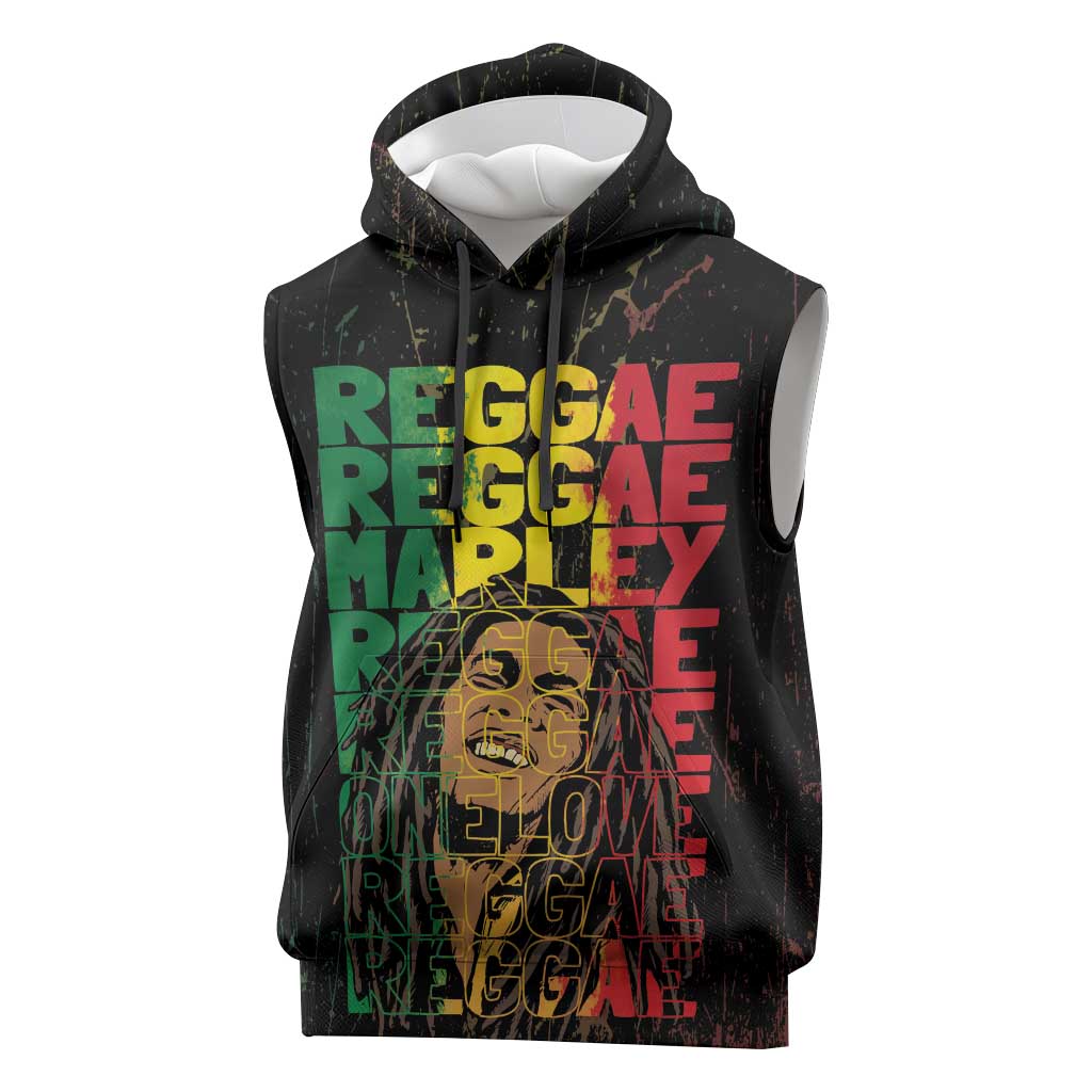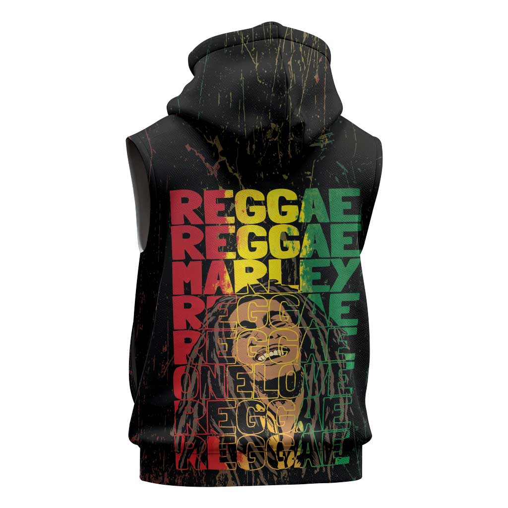 Reggae King Marley Sleeveless Hoodie Typeset Grunge Style
