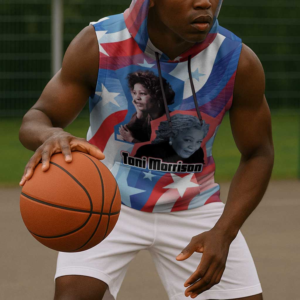 Toni Morrison Sleeveless Hoodie Abstract Wings Design Empowering Quote Dual Portrait Celebration of Literary Freedom TS04