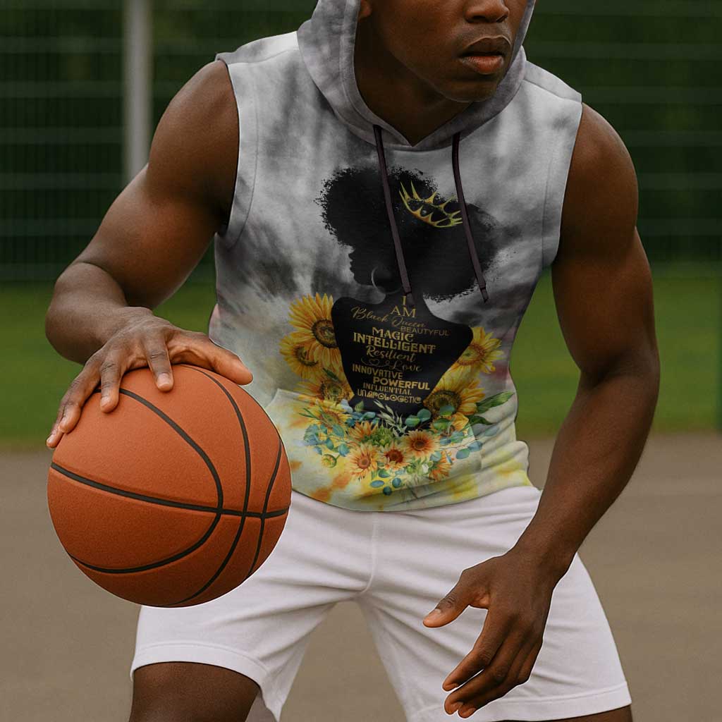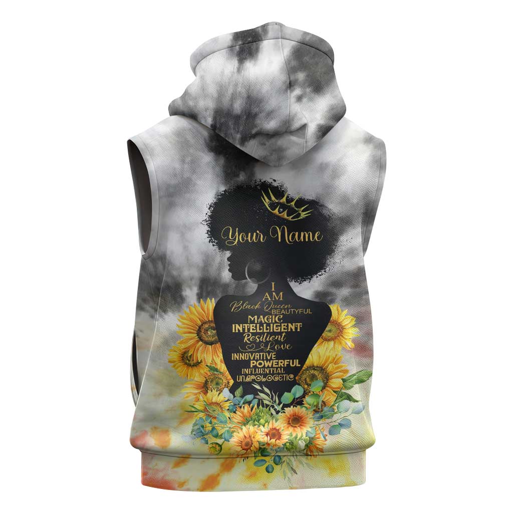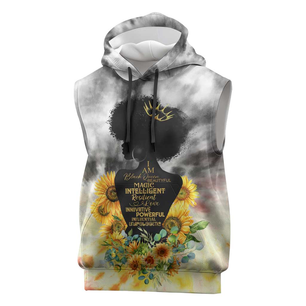Vintage Flowers - I Am Black Queen Sleeveless Hoodie