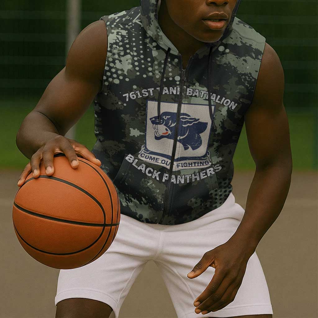 761st Tank Battalion Black Panthers Sleeveless Zip Hoodie WWII Military Camouflage
