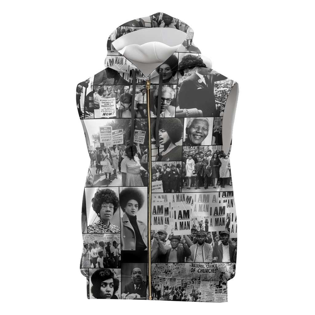 African Sleeveless Zip Hoodie Black Power Images DT02