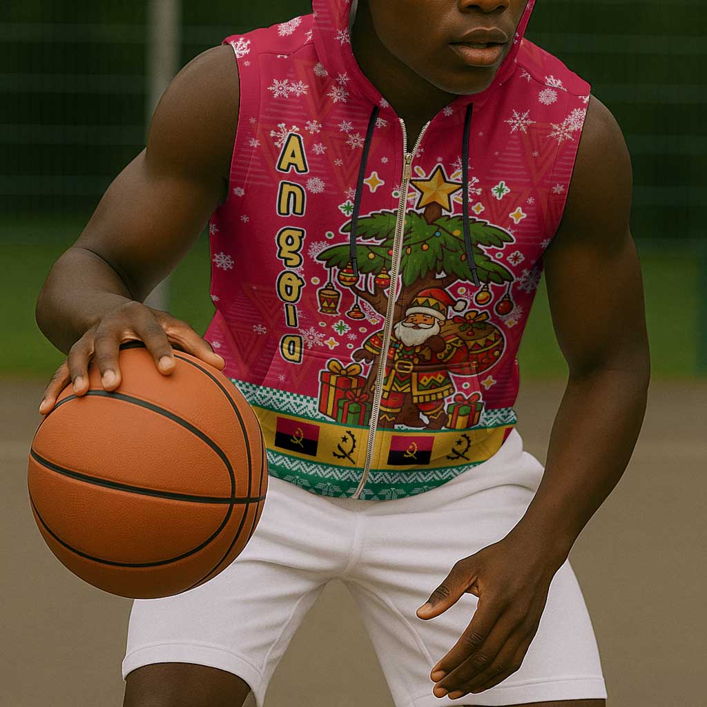 Angola Christmas Sleeveless Zip Hoodie Santa Gifts and National Flag Map Motif
