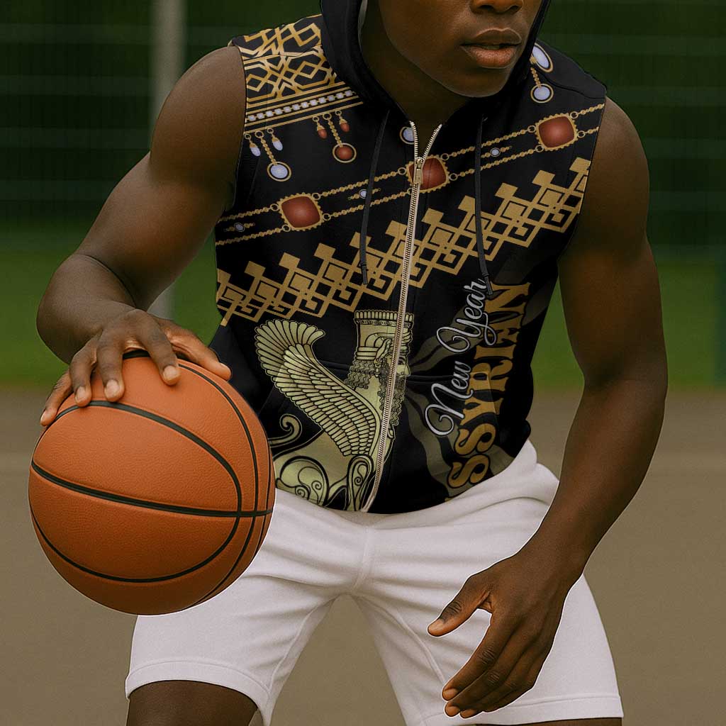 Assyrian New Year Sleeveless Zip Hoodie Akitu 6774 Kha B Nissan