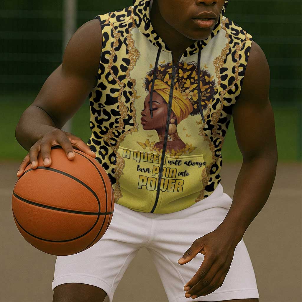 Black Her Story Sleeveless Zip Hoodie A Queen Turns Pain Into Power