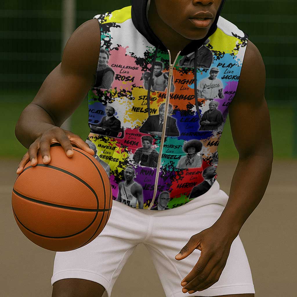 Black History Month African American Sleeveless Zip Hoodie Paint Splashes