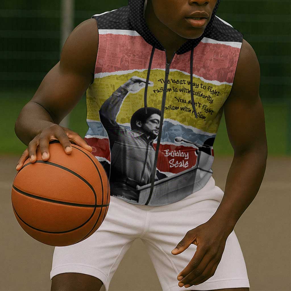 Bobby Seale Sleeveless Zip Hoodie Torn Paper Collage Design Solidarity Quote Powerful Speech Artwork Civil Rights