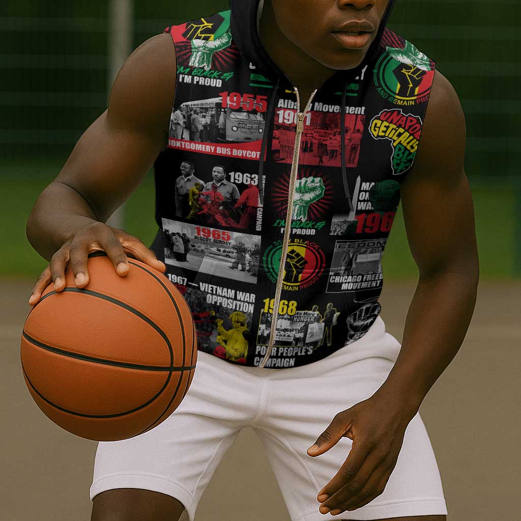 Civil Rights Movement Sleeveless Zip Hoodie Poster Art Black Pride