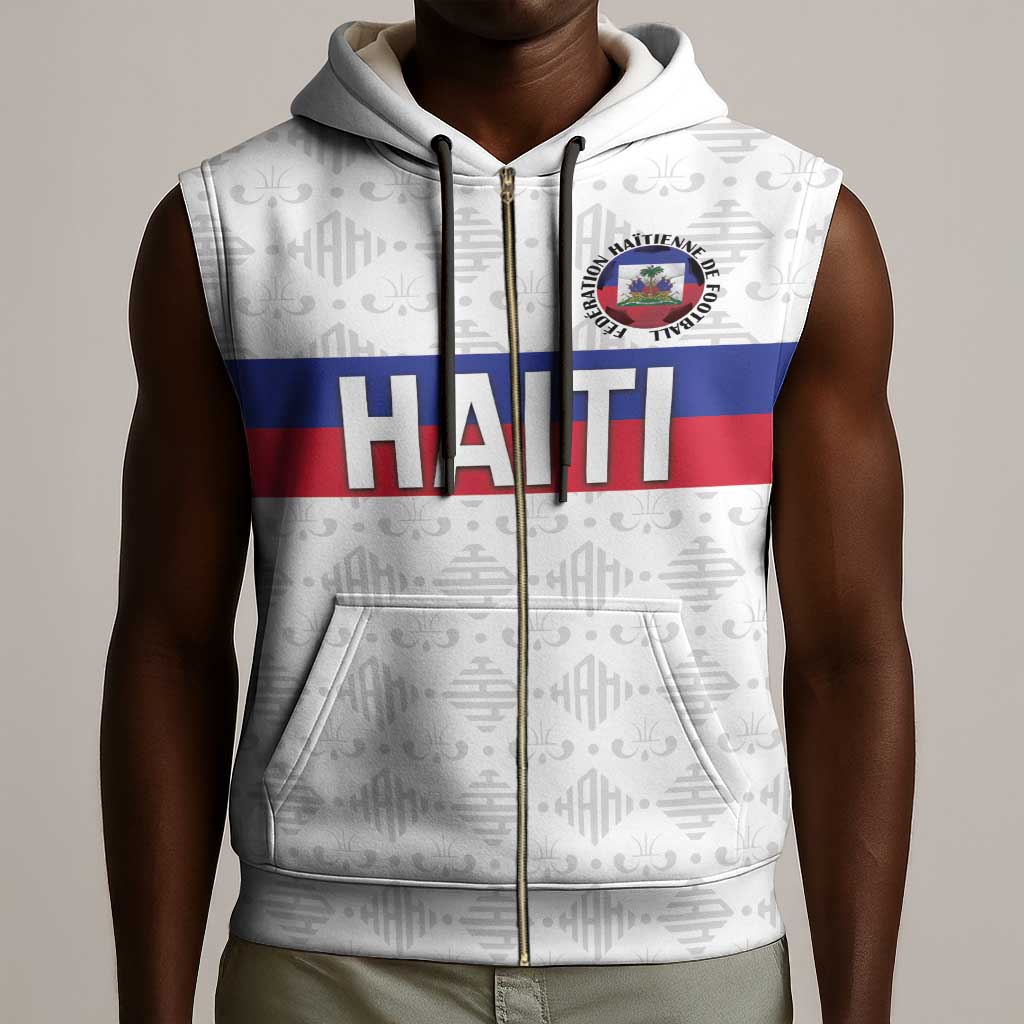 Custom Afro Haiti Football Sleeveless Zip Hoodie Ekip Foutbol Ayiti