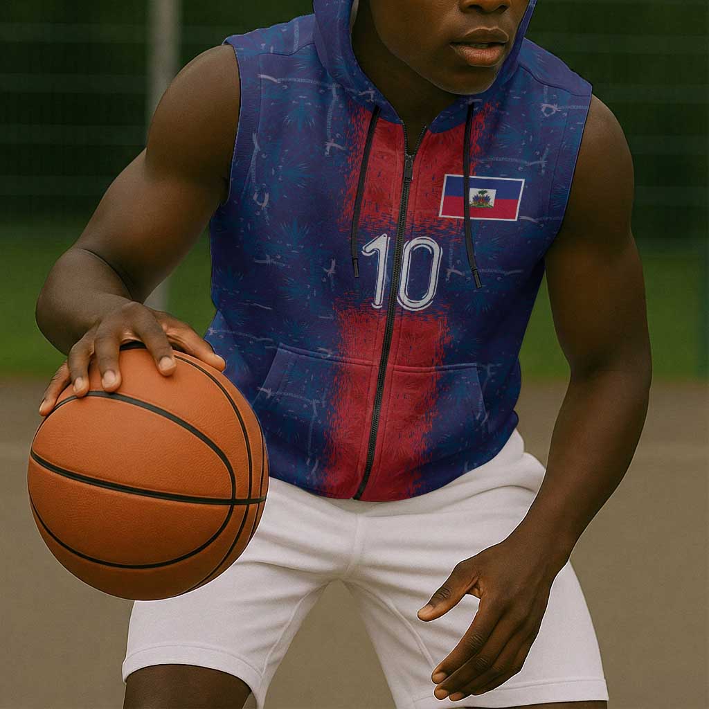 Custom Haiti National Football Sleeveless Zip Hoodie Haiti Emblems Motif