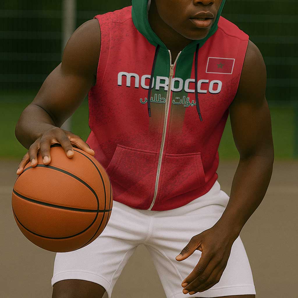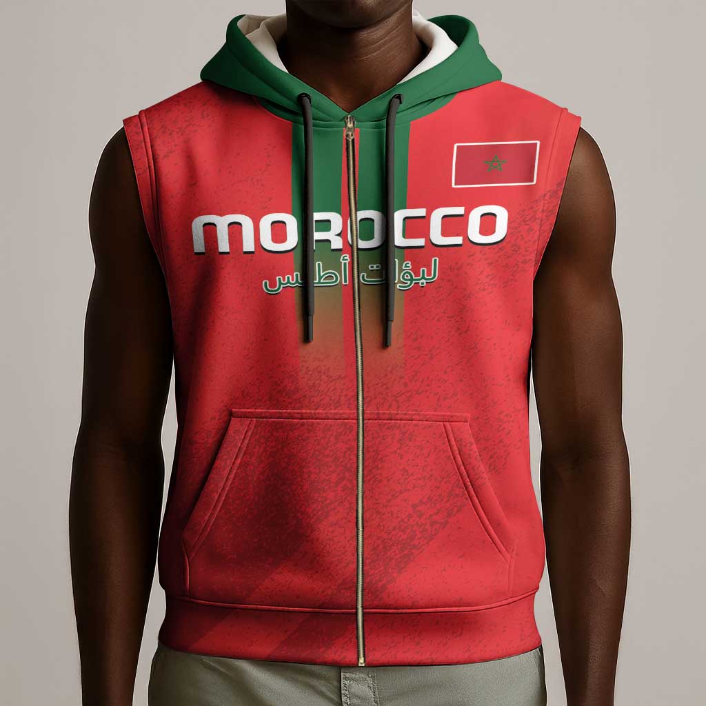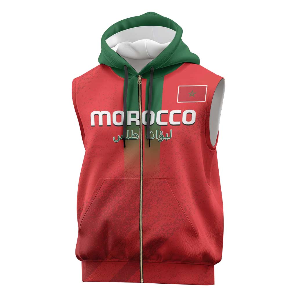 Custom Morocco Football Sleeveless Zip Hoodie Go Lionesses of Atlas