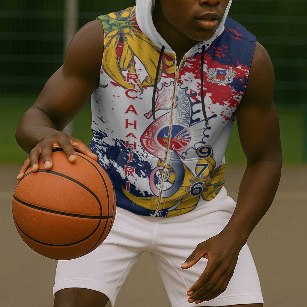 Département de Mayotte Sleeveless Zip Hoodie Ra Hachiri 976 Map With Ylang Ylang