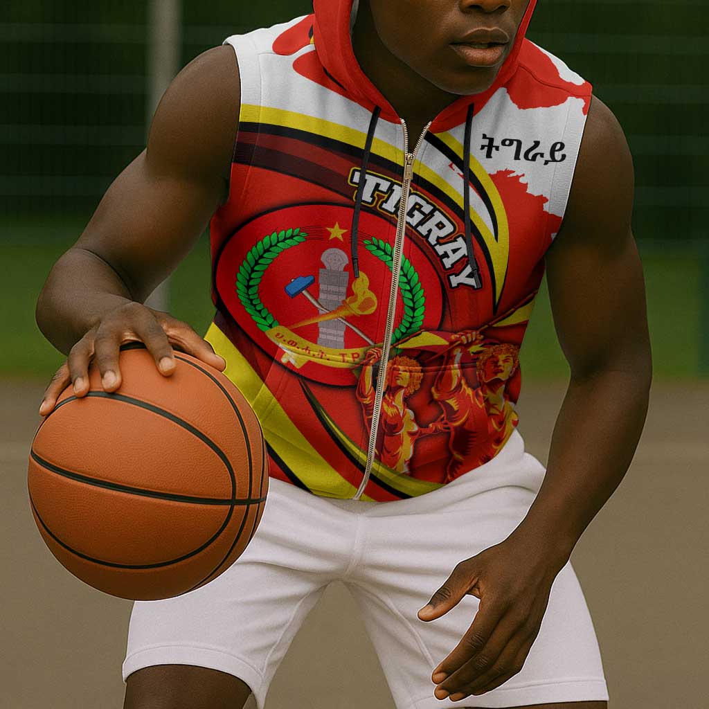 Ethiopia Tigray Sleeveless Zip Hoodie Revolution Emblem Freedom Fighters and Flag