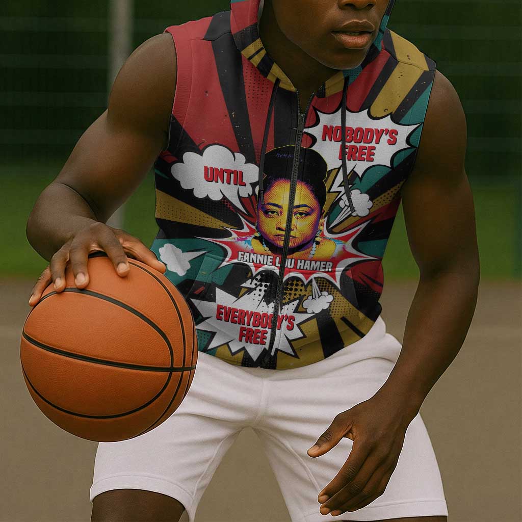 Fannie Lou Hamer Sleeveless Zip Hoodie with Pop Art Comic Style Design Bold Quote and Civil Rights Tribute