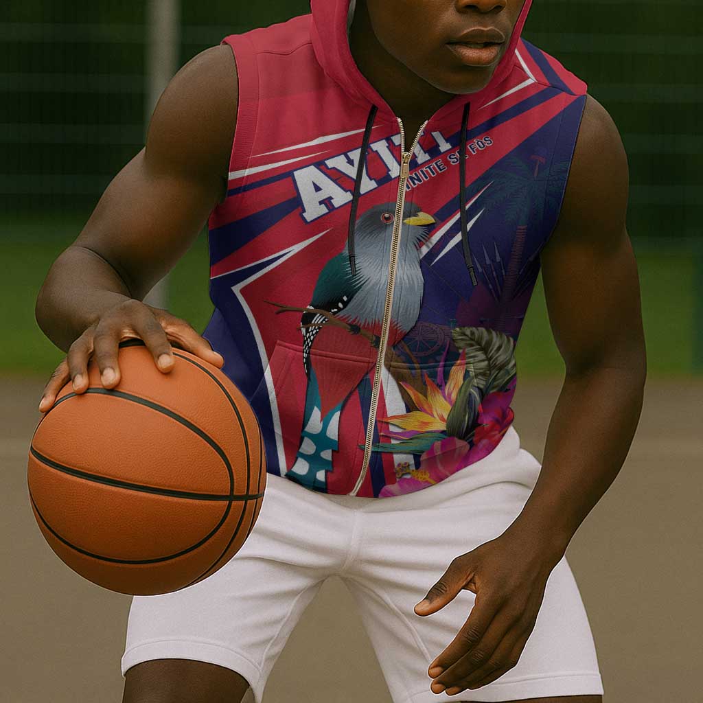 Haiti Personalized Sleeveless Zip Hoodie Hispaniolan Trogon Tropical Vibes