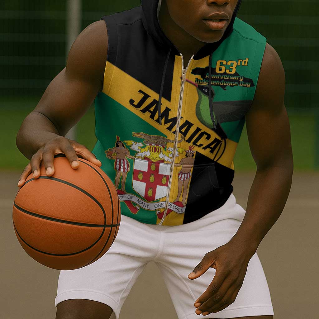 Happy Jumieka Independence Day Sleeveless Zip Hoodie Coat Of Arms Flag Style