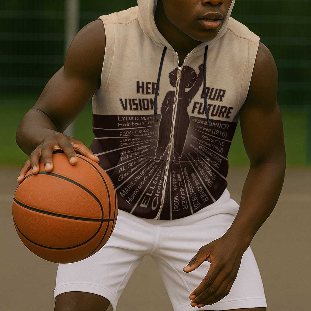 Her Vision Our Future Sleeveless Zip Hoodie Influential Black Women Inventors and Pioneers
