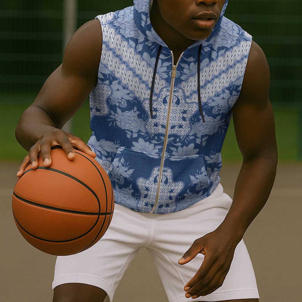 Indonesia Javanese Batik Nelson Mandela Madiba Blue Sleeveless Zip Hoodie